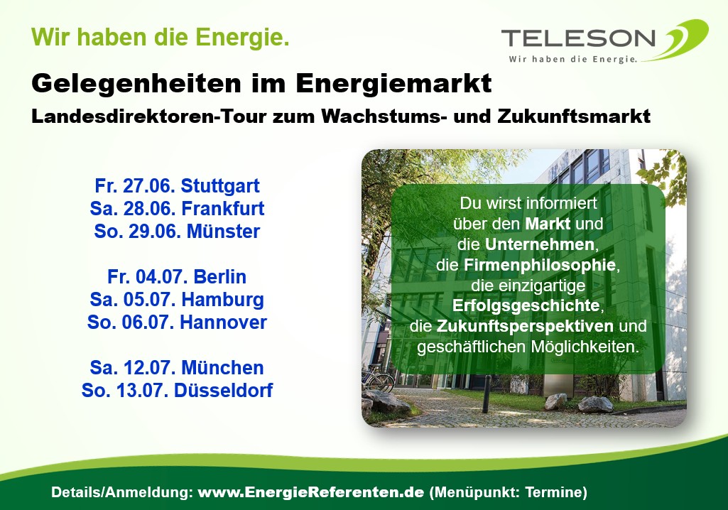 Teilnahmebedingungen: Du bist neue VP mit einer eigenen VP-Nr. in unserer Landesdirektion A. Trapp und optional bereits an einer EnergieGrundSchulung (EGS) teilgenommen.